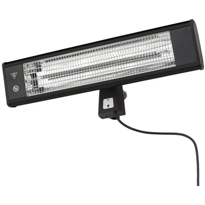 General description Bring warmth to your outdoor areas with this Patio Heater, offering 1800W of power and an IP44 rating for water resistance. The sleek black finish adds a modern touch, making it suitable for gardens, patios, or terraces. Its wall-mounted design ensures easy installation and reliable heat during colder months. Technical specifications Product Type: Wall Mount Patio Heater Colour: Black Power: 1800 Watt Height: 24.6 cm approx Width: 65 cm approx Heating Element: 1800w Carbon Fibre Voltage: 220-240V IP Rating: IP44 Power Cord Length: 1.8 Metres with British Standard Plug Heat Distribution Area: 12 Square Metres Installation Wall-mounted design for easy installation. Other information Floor stand available separately.