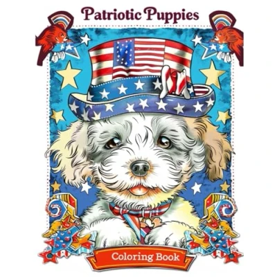 Patriotic Puppies Coloring Book: Wearing Hats Pages for Stress Relief and Relaxation