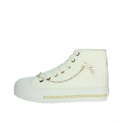 Patrizia Pepe girls' trainers with a modern and attractive design. Made from genuine calf leather to guarantee quality and durability. Available in an elegant blend of white, perfect for versatile and fashionable combinations. Size 35 available, ideal for girls looking for fashionable shoes in all sizes