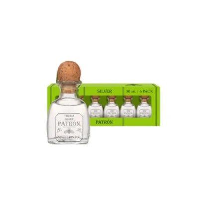 One 6-pack of PATRÓN Silver Tequila 5cl / 50ml miniatures PATRON Silver Tequila is passionately handcrafted from the finest 100% Weber Blue Agave and carefully distilled in small batches in Jalisco, Mexico Made from three natural ingredients - water, agave and yeast - to deliver oak wood aromas with notes of vanilla, raisin, and honey and a smoky sweet finish Enjoy in a Patron & Tonic, Silver & Soda or Patron Perfect Margarita Patron makes a simply perfect gift PATRON Silver Tequila is 40% alcohol by volume