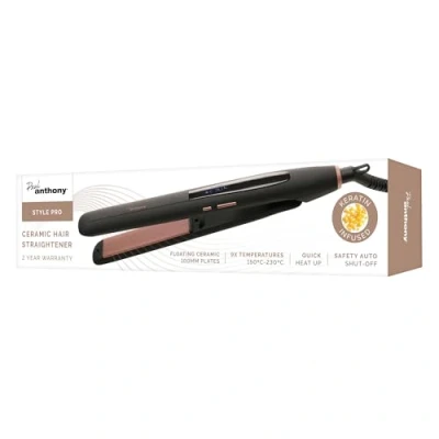 Paul Anthony 'StylePro' Ceramic Hair Straightener with Keratin, 9X Temperatures 150C to 230C, LED Display, 60 Minute auto Shut Off H2214