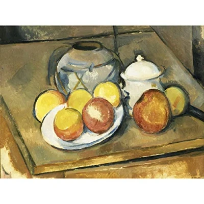 Paul Cezanne Strohvase mit Zuckerdose und Äpfel, großer Kunstdruck auf Leinwand, Premium Poster