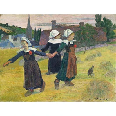 Paul Gauguin Bretonische Mädchen, tanzender Pont Aven, großer Kunstdruck, Wanddekoration, Premium Wandbild