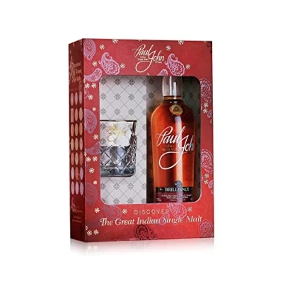 Paul John Brilliance Indian Single Malt Whisky 70 cl, ABV 46%, Gift pack with Free Glass