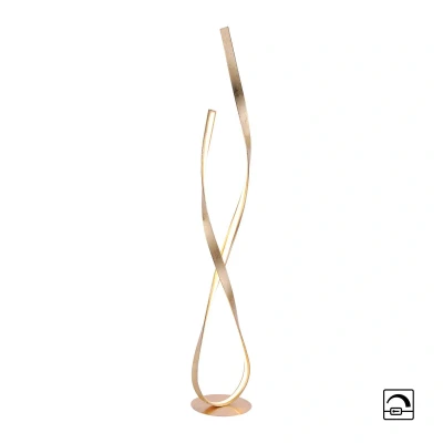 Linda LED floor lamp, infinitely dimmable A guarantee for a wow effect: the LED floor lamp attracts everyone's attention with its elegant yet modern design. With its gold leaf look and curved shape, it not only brings pure elegance into your home, but also provides pleasant, glare-free lighting. The impressive light source also creates a cosy ambience in your living space with its warm white light colour. It is supplied with a permanently installed LED bulb. Thanks to the LED technology used, it is characterised as energy-saving and impresses with its low heat generation. You have the option of variably dimming the light intensity of the floor lamp using an integrated cable dimmer. Let your home shine in a wonderful light with this stunning floor lamp!