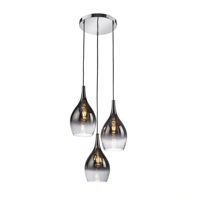 Pilua pendant light with smoky grey glass lampshades This beautiful Pilua pendant light is particularly suitable for mounting above a round dining table. It blends in perfectly with modern furnishing styles. The round canopy of the hanging light is coloured in a sophisticated chrome shade. The three drop-shaped lampshades are attached to the canopy in different lengths and have a colour gradient from smoky grey to white - making the light a highlight in your home. The light is fitted with three E27 bulbs (not included)