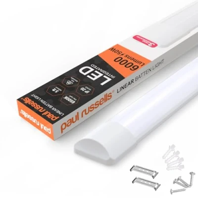 paul russells 5ft LED Batten Light, Ceiling Fitting Tube 6500K Daylight, 50W, 6000 Lumens, Light for Office, Bathroom, Kitchen, Garage, Warehouse Fluorescent Lighting Replacement, 1 Pack