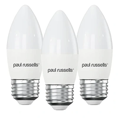 paul russells 6.5W LED Candle Light Edison Screw E27, 60w Bulb, 806LM Bulbs, 6500K Daylight Lamps, Frosted C35 ES Energy Saving Chandelier Lightbulbs, Non Dimmable, Pack of 3