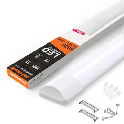 paul russells 6ft LED Batten Light, Ceiling Fitting Tube 4000K Cool White, 60W, 6600 Lumens, Light for Office, Bathroom, Kitchen, Garage, Warehouse Fluorescent Lighting Replacement, 1 Pack