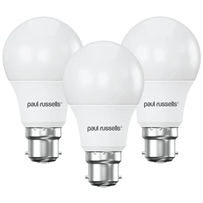 paul russells Bayonet Cap Lightbulb, 60w B22 Fitting LED Bulbs, Bright Daylight 6500K, 806 Lumen, 8 watt Energy Saving, A60 Standard Light Bulb (Non Dimmable), Pack of 3