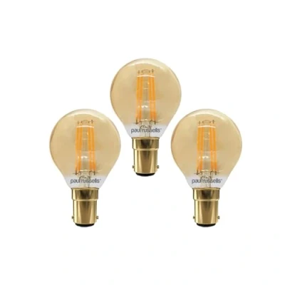 paul russells Dimmable Filament Golf Ball LED Bulbs, Small Bayonet Cap, B15, SBC, 4.5Watt 423LM G45 40w Equivalent, Mini Globe 2200K Amber, Energy Saving, Decorative Chandelier Lamps, Pack of 3