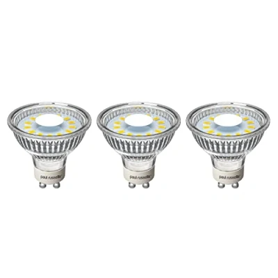 paul russells GU10 LED Bulbs, 4W 450lumens, 35Watt Equivalent Halogen Spotlight Bulbs Replacement, 100 Wide Beam, Bright Daylight 6500K, No Flickering, Energy Saving Non Dimmable, Pack of 3