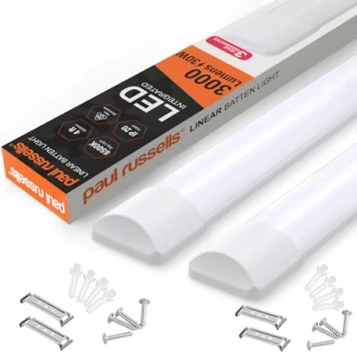 Enjoy peace of mind with our responsive service, featuring a 3-year replacement guarantee and 365-day online customer support. We're always here to assist you when you need us. Experience ultra-slim, top-quality lighting with our 30W LED batten tube lights. These premium lights offer 3000 luminous fluxes with quick full brightness and no flickering, and each set includes screws, expansion screws, a linear batten light (with 15cm electric cord), and a user manual for easy installation. Trust in our quality assurance with CE/UKCA, and RoHS-certified paul russells IP20 rated modern LED batten lights. Carefully inspected and crafted with premium materials like polycarbonate and stainless steel, these lights are built to last a very long time. Transform any living space with our versatile 6500K Bright Daylight LED Non-Dimmable LED Batten Tube Lights. Perfect for use in living rooms, kitchens, garages, bathrooms, hallways, offices, commercial areas, and ceiling fixtures, you can enjoy up to 85% energy savings and an average lifespan of over 25000 hours. Enjoy stunning visual quality with our high colour rendering (CRI > 80) and wide 120-degree beam angle, delivering vivid and natural smooth colours that enhance any space. Illuminate your space with paul russells LED batten lights today and experience the difference! (Images are for illustrative purposes only.)
