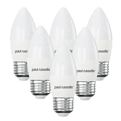 paul russells LED Candle Dimmable Edison Screw Light, 5.5W 470 LM E27 C37 Bulbs, 40w Equivalent, 2700K Warm White, Dimmer ES Energy Saving Ceiling Lightsbulbs, 6 Pack