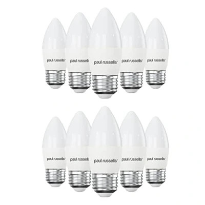 paul russells LED Candle Dimmable Edison Screw Light Bulbs, 5.5W 470LM E27 C37 40w Equivalent, 6500K Daylight, Dimmer ES Energy Saving Ceiling Lights, Pack of 10