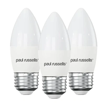 paul russells LED Candle Dimmable Edison Screw Light Bulbs, 5.5W 470LM E27 C37 40w Equivalent, 6500K Daylight, Dimmer ES Energy Saving Ceiling Lights, Pack of 3