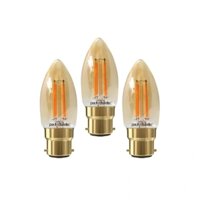paul russells LED Filament Candle Dimmable Bayonet Cap B22 Light Bulbs, 4.5Watt 423LM C35 40w Equivalent, 2200K Extra Warm White Dimmer BC Energy Saving Chandelier Lamps, Pack of 3