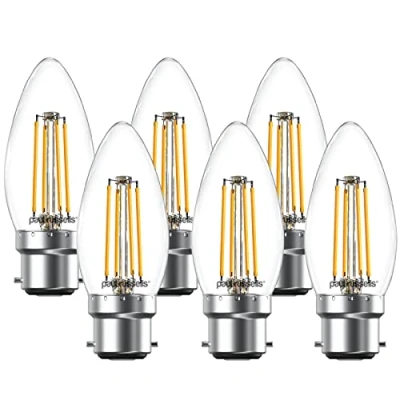 paul russells LED Filament Candle Dimmable Bayonet Cap B22 Light Bulbs, 4.5Watt 470Lumens C35 40w Equivalent, 2700K Warm White Dimmer BC Energy Saving Chandelier Lamps, Pack of 6