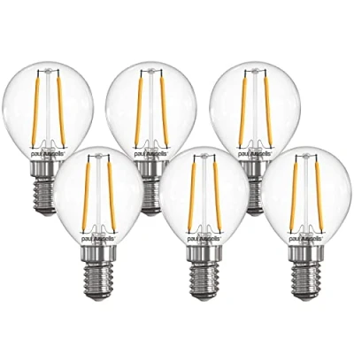 paul russells LED Filament Golf Ball Light Small Edison Screw E14, 25w Equivalent Replacement 2.5W 250LM Mini Globe G45 Bulbs, 2700K Warm White, Energy Saving Chandelier Lightbulbs, Pack of 6
