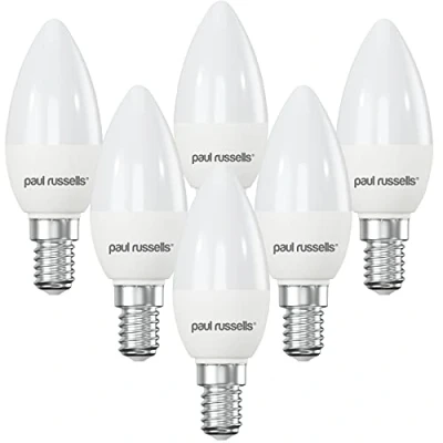 paul russells LED Light Small Edison Screw SES, 25w Equivalent, 2.5watt 250LM Bulbs, 2700K Warm White Lamp, Frosted C37 Candle E14 Energy Saving (Not Dimmable) Chandelier Lightbulbs Pack of 6