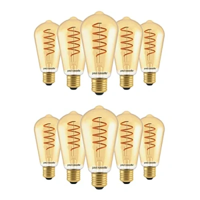 💡 BUYER SATISFACTION: When you buy these screw bulbs they come with a 36 months replacement guarantee, no questions asked. Along with this we also offer customer support 365 days a year, so feel free to contact us if you have any questions or queries to do with your E27 bulbs. 💡 QUALITY ASSURED: Every Edison Screw light bulb that we sell has been carefully checked and tested for quality by the CE and UKCA. We only use high-quality amber glass and aluminium when crafting each LED Filament E27 bulb, so you can be confident in their effectiveness and safety. 💡 COMFORTABLE BRIGHTNESS: An E27 Cap bulb from this set produces a lovely extra warm white light that shines with 250 lumens. With no blinking or flickering and full brightness achieved in less than 0.5 seconds (a literal blink of an eye!), these bulbs are great for creating a comfortable home environment. 💡 WIDE APPLICATIONS: Whether you need an Edison Screw LED Filament bulb for a wall lamp, table lamps, chandeliers, or to illuminate any other part of the house, these are the perfect choice for you. The brightness given off by these bulbs suits any room of the house, from the kitchen to the bathroom. 💡 BEAM ANGLE: The beam angle of each LED Filament E27 Edison Screw bulb is 330 degrees, providing excellent coverage for indoor spaces. Each Edison LED Filament bulb provides a nice wide breadth of light with the stunning extra warm white colour rendered at a rate of CRI > 80, which makes for a pleasant atmosphere., Manufacturer: paul russells