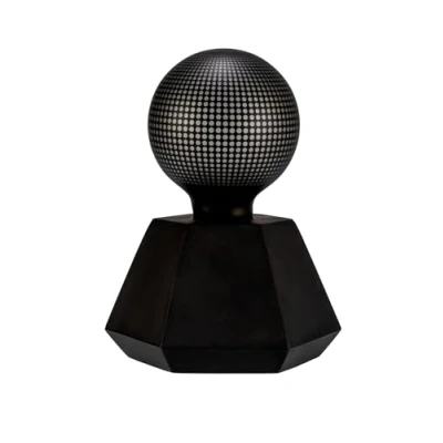 All black: LED decorative concrete table lamp Black Flare with bulb As a base, the LED decorative lamp Black Flare has a noble base made of black concrete. Integrated into the top is the base for the illuminant included in the delivery. This is an LED lamp, on which a black grid pattern is applied. This provides a feel-good atmosphere and makes the Black Flare decorative lamp a unique eye-catcher. Since this lamp is battery operated and thus does not require a cable, it can be flexibly repositioned. Thus, it decorates any dry place of use indoors unerringly. - Batteries: 2 x AA (not included) - suitable illuminant included; not suitable for conventional E27 lamps - equipped with timer (turns off automatically after 6 hours)