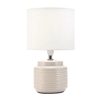 - The ceramic base adds a cosy touch to your space - Its in-line switch gives you easy on and off control - It works with E14 bulb (sold separately), so you can replace as needed - Its fabric shade softens the light for a relaxed vibe