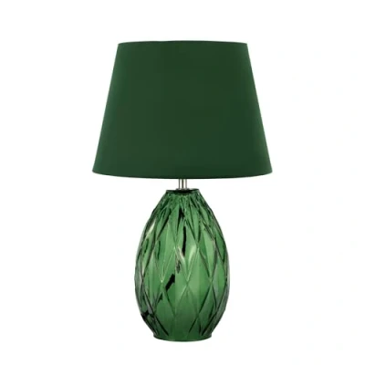 Table lamp Crystal Velvet in green Green darling in crystal look: The table lamp Crystal Vellvet brings cozy light accents and a very personal touch home. The pretty lampshade made of dark green velvet enchants in combination with the noble, oval lamp base in crystal look and harmonizes as a great eye-catcher with classic and modern interior styles. Crystal Velvet looks particularly good on side tables or chests of drawers. Incl. cord switch.