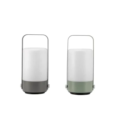 LED decorative lantern Mobile Charm with battery operation, for indoor and outdoor use, double pack light green and gray The Mobile Charm LED decorative lantern can be used to add atmosphere to a windowsill, nightstand, patio or garden party. The design is based on a hand lantern. Two copies are supplied - one with light green and one with light gray housing. Each of them is equipped with opal diffuser and carrying handle, as well as an integrated warm white LED. Power connection is not required thanks to battery operation. - Batteries: 3 x AAA each (not included). - Protection class: IP44