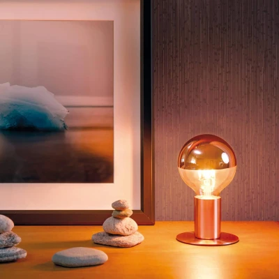 E27 6.5W LED globe G95 with head mirror copper Vintage or industrial, Scandinavian or modern - the LED globe lamp sets with its head mirror in the trendy color of copper every interior style in the right light. The 9.5 cm diameter globe looks particularly good in decorative and cage lights. But also in open pendant or ceiling lights, it is a real eye-catcher. Technical data - comparative value of 48 watts - 50,000 switching cycles - not dimmable