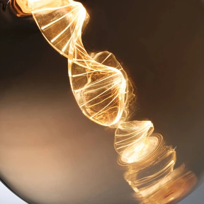 LED globe bulb E27 3.5W Filament Helix 1,800 K, gold tinted glass The LEDs in this LED globe bulb with E27 base have been arranged in a very special way. The decorative bulb looks great in any socket without a lampshade and provides absolutely glare-free and very cosy light thanks to the fine laser engraving, perfect as a decorative light in the living room. Part of the light is emitted directly downwards through the glowing ring at the bottom of the bulb - Warm golden light 1,800 K - Only suitable for decorative lighting, not for general lighting