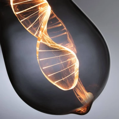 E27 3.5W filament LED bulb Helix in bulb shape, smoky grey tinted, 1,800 K This LED bulb in bulb shape is ideal for decorative lighting with particularly warm light and a great look. The LEDs have been installed in a special way in the smoky grey tinted glass and emit an absolutely glare-free light thanks to the fine laser engraving. The illuminated ring at the lower end provides targeted downward light emission - Warm golden light 1,800 K - Only suitable for decorative lighting, not for general lighting
