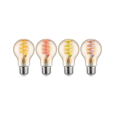 Dimmable E27 LED bulb, 6.3 watts, with Zigbee 3.0, RGBW The Zigbee 3.0 filament bulb in a classic bulb shape with gold-tinted glass impresses with its vintage design and pleasant, even light. The RGBW function allows you to adjust the light colour as required and choose from numerous bright colours. The light source can be controlled individually or within a group using an app or voice command via a smart home gateway that has a Zigbee interface. Control without a gateway is possible using a remote control. This allows you to select the right lighting mood for your home at any time. The light source fits into any standard E27 socket - dimmable