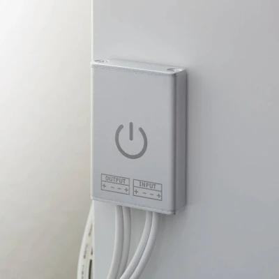 Touch switch with memory function for MaxLED By simply tapping this touch switch, an existing MaxLED LED strip can be switched on and off. If the switch is held down, stepless dimming takes place. The memory function reactivates the last selected light output when switched on again, so that it does not have to be set again each time. Ideal for creating atmospheric background lighting for display cases or furniture. - Compatible with MaxLED Strip 500 / 1000 - incl. adhesive pads - One input and one output for MaxLED plug-in system - max. total power of connected loads: 144 W