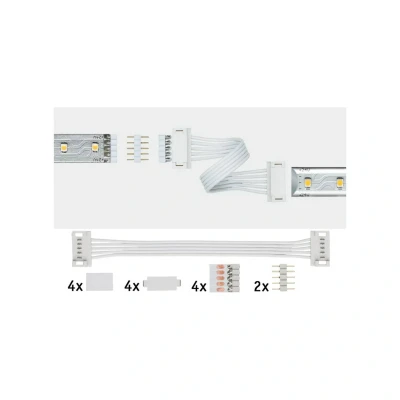 Lights.coPractical MaxLED universal connector in a set of two, incl. five-pin plug This MaxLED universal connector easily connects shortened LED strips and those that have not been shortened to corner and deep profiles. It is made of white plastic and has such a flexible design that the connecting elements can be laid at any angle. Small height differences can also be levelled out.