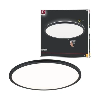 Atria Shine LED Ceiling Light 3-Step Dim. Black from Paulmann is the ideal solution for those who want stylish and functional lighting in their home. This elegant ceiling light, made of black plastic, fits perfectly in the living room, bedroom and kitchen. With a height of only 2.8 cm and a diameter of 42.0 cm, it is designed to provide an even and warm illumination that creates a cosy atmosphere in the room.