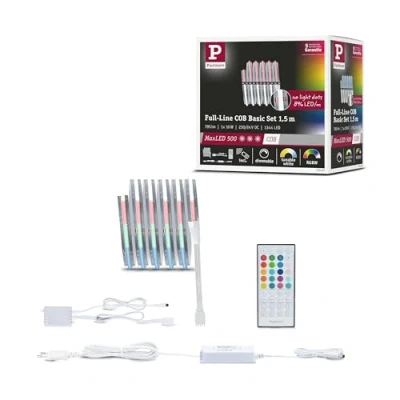 COMPLETE SOLUTION - for impressive lighting: The MaxLED 500 full-line cob basic set contains all the necessary components to realise individual lighting ideas and create stylish accent lighting INCLUDED IN THE SET - Including high-quality light strip and ballast: The set includes a light strip and a matching ballast to start installation immediately and realise versatile lighting designs FLEXIBLE EXPANSION POSSIBILITIES - The basic set can be easily expanded with additional strips, connectors and control units with convenient remote control to meet individual requirements VERSATILE RGBW TECHNOLOGY - With the innovative RGBW technology, you can choose between flowing colour tones. In the sun, different lighting moods can be created according to your own wishes TUNABLE-WHITE FUNCTION - for the perfect atmosphere: the Tunable White function allows you to choose between warm white and cooler light, so that the right lighting can be created for every situation This product is a containing product. Containing products are luminaires that can be disassembled for a separate check of the light source(s) they contain. This product contains a light source of energy efficiency class F.