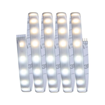 Ready for integration into a smart home system: The ZigBee-capable basic set LED strip MaxLED 500 with controller and power supply unit, CCT function Integration into a smart home system is just as easy with the basic set of the LED strip MaxLED 500 as the installation. By means of plug connections, everything can be mounted quickly and easily, and the self-adhesive underside makes installation even easier. To operate MaxLED from the sofa, to dim the brightness and to change the color temperature, the integration into a smart home system based on ZigBee is necessary. Philips Hue or IKEA Tradfri, for example, come into question here. Of course, Paulmann itself also has a corresponding bridge in its range. This is called Gateway smik, offers a free app for iOS and Android and can be purchased separately as an accessory. For those who prefer a classic remote control instead of a smartphone, Paulmann offers the Gent remote control, which does not require a bridge. With it, all functions of MaxLED can also be controlled. Gent is, as well as a ZigBee-capable 2-gang wall switch, available separately via the accessories. Technical features / compatibility: - complete set incl. LED strip and power supply - expandable (see accessories) - ZigBee 3.0 compatible - compatible with Paulmann smart home remote control and wall switch (see accessories) - compatible with ZigBee-based smart home systems such as Philips Hue or IKEA Tradfri - dimmable and color temperature adjustable (after integration into a smart home system) - adhesive back, plug-in system for easy installation and can be shortened as required - flexible material for use on flat or curved surfaces Note: To use the intelligent light control (dimming, CCT, operation via app, etc.), a separate ZigBee remote control is required.) a separate ZigBee bridge or ZigBee handheld transmitter is mandatory (see accessories)