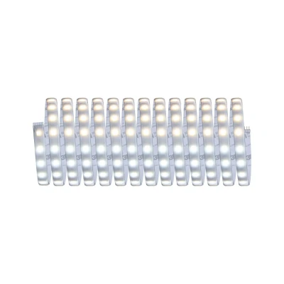 Ready for integration into a smart home system: The ZigBee-capable basic set LED strip MaxLED 500 with controller and power supply unit, CCT function Integration into a smart home system is just as easy with the basic set of the LED strip MaxLED 500 as the installation. By means of plug connections, everything can be mounted quickly and easily, and the self-adhesive underside makes installation even easier. To operate MaxLED from the sofa, to dim the brightness and to change the color temperature, the integration into a smart home system based on ZigBee is necessary. Philips Hue or IKEA Tradfri, for example, come into question here. Of course, Paulmann itself also has a corresponding bridge in its range. This is called Gateway smik, offers a free app for iOS and Android and can be purchased separately as an accessory. For those who prefer a classic remote control instead of a smartphone, Paulmann offers the Gent remote control, which does not require a bridge. With it, all functions of MaxLED can also be controlled. Gent is, as well as a ZigBee-capable 2-gang wall switch, available separately via the accessories. Technical features / compatibility: - complete set incl. LED strip and power supply - expandable (see accessories) - ZigBee 3.0 compatible - compatible with Paulmann smart home remote control and wall switch (see accessories) - compatible with ZigBee-based smart home systems such as Philips Hue or IKEA Tradfri - dimmable and color temperature adjustable (after integration into a smart home system) - adhesive back, plug-in system for easy installation and can be shortened as required - flexible material for use on flat or curved surfaces Note: To use the intelligent light control (dimming, CCT, operation via app, etc.), a separate ZigBee remote control is required.) a separate ZigBee bridge or ZigBee handheld transmitter is mandatory (see accessories)