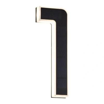 Outdoor solar house number in black with warm white illumination The solar house number is equipped with a solar module invisibly integrated into the number, which charges the integrated, replaceable rechargeable battery during the day so that the illuminated house number can be mounted on the façade, property wall or any other location completely independently of a power connection. As soon as it gets dark, the house number is indirectly illuminated by the integrated, warm white LEDs. The light shines sideways through the satinised border of the number - Max. lighting time with full battery 8 hours - Battery charging time 12 hours - Battery 1 x AAA 1.5V (micro), included