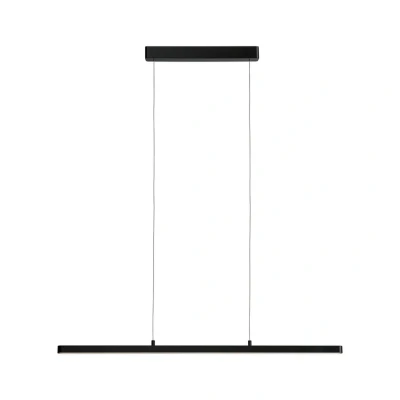 The Lento pendant light features a slim and space-saving profile, available in a chic matt black finish. It incorporates both downward and upward light apertures, allowing for a dual lighting effect. The upward light casts a gentle glow that enhances the ambiance of the room, while the downward light provides practical illumination for tasks such as dining or reading. This combination ensures uniform room lighting with high light yield, tailored to meet your specific needs.