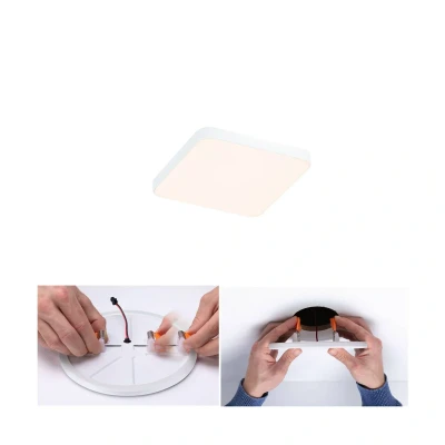 Veluna Edge IP44 LED recessed light in angular form with warm white light colour Veluna VariFit Edge is a square LED recessed panel with a frameless design that can be installed in recess openings of different sizes thanks to VariFit technology with adjustable clamping springs, making it particularly suitable for existing recess openings. Thanks to the satinised plastic cover, it emits glare-free, evenly diffused light with a warm white light colour and is also suitable for installation in bathrooms or other damp rooms thanks to its IP code IP44. The particularly flat design allows installation in cavity depths of just 3.5 cm - Suitable for bathrooms and damp rooms thanks to IP44 protection - High luminous efficiency with wide-area light - VariFit flexible installation with adjustable clamping springs