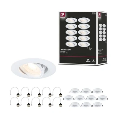Paulmann 92115 recessed luminaire 10 Pack swivelling Round 90mm 30 GU10 max. 10x10W 230V White lamp lamp not Included