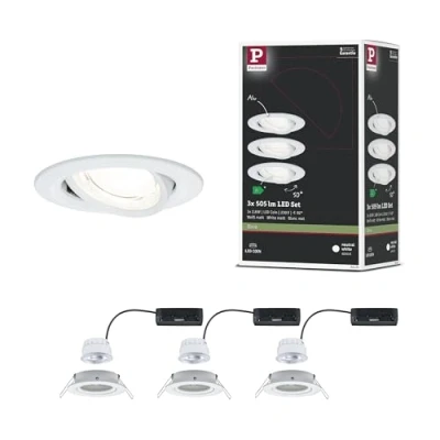 Paulmann 92455 Nova LED Recessed Spotlight Round Corner 84 mm 50 3x2.8W 3x505lm 230V 4000K Frosted White