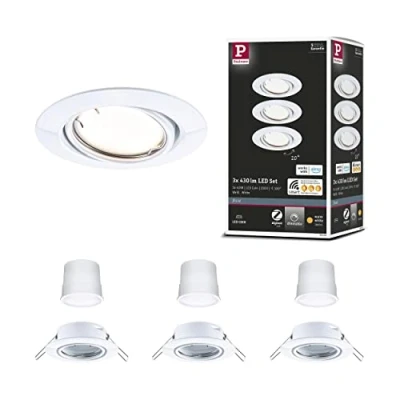 Paulmann 92463 Smart Home LED Recessed Spotlight Zigbee Base Kit Adjustable Round 230V 3x4.9W 3x430lm Dimmable 90mm White Metal 3000K, 14.7 W