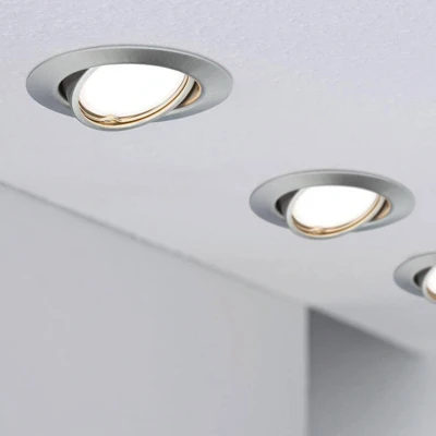 Metal recessed spotlight Base in a practical set of 10 The small Base recessed spotlight comes in a set of ten, allowing you to create large-scale lighting installations in your home. The housing is made of durable metal and contains a GU10 socket, into which you can insert a bulb of your choice. The spotlight can be swivelled and adjusted to the spatial conditions in no time at all.
