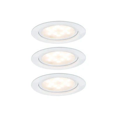 COMPLETE SET - the set consists of three luminaires, including LED lamp, 3 x 4.5W ECONOMICAL - LED technology uses up to 80% less energy than conventional incandescent lamps SUPER FLAT - installation in cavity depths of just 30 mm possible BRAND MANUFACTURER - Paulmann has been passionately making lights for 40 years ECONOMICAL - LED technology uses up to 80% less energy than conventional incandescent lamps This product is a containing product. Containing products are luminaires that can be disassembled for a separate check of the light source(s) they contain. This product contains a light source of energy efficiency class E.
