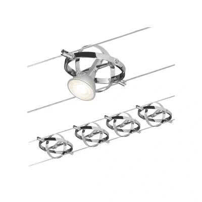 Paulmann 94144 Cable Lighting System Cardan Set, Extendable Max 4 x 10 Watt Matt Chrome/Chrome Wire Suspension Lamps Without Bulbs