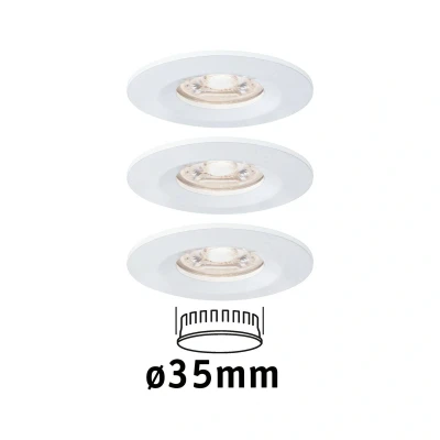 Small LED recessed spotlight Nova mini in a set of 3 The small, rigidly illuminated recessed spotlights Nova mini can be used in a wide range of applications thanks to their small diameter. They are particularly popular in corridors, conservatories or above counters and in balcony panelling. The warm white Nova mini's in a set of three are very restrained in design and style-independent. In addition, the LEDs are particularly flat, interchangeable and can be connected to each other without limiting the number, which opens up a wide range of possibilities for the user. The recessed spotlights are protected against splashing water with IP44 code and can therefore also be used in the bathroom.