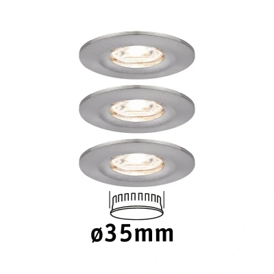 Paulmann 94301 Nova mini LED recessed luminaire coin round rigid incl. 3x4 watt ceiling spotlight brushed iron lamp aluminium warm white 2700 K